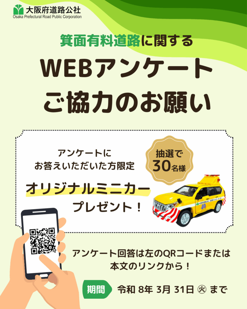 箕面有料道路に関するWEBアンケートを現在実施しております。